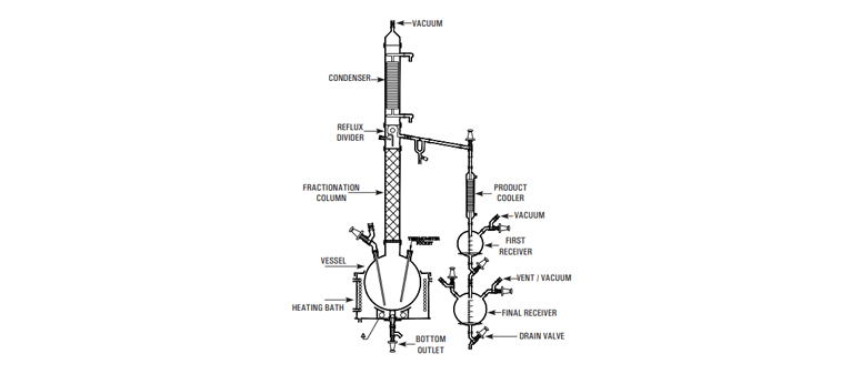 This is essentially a compact batch-type fractional distillation unit in which the reboiler consists of a vessel mounted in a heating bath and with a packed column above. The vapours from top is condensed and can be refluxed as per requirement.